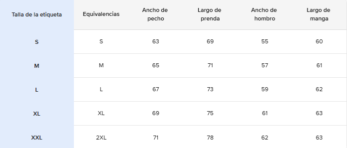- Material: 60% algodón, 40% poliéster