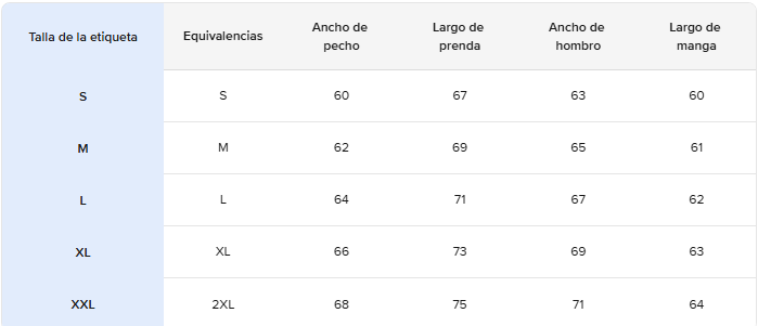- Material: 60% algodón, 40% poliéster