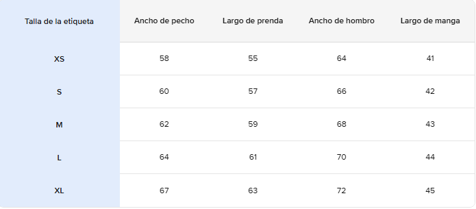 - Material: 60% algodón, 40% poliéster