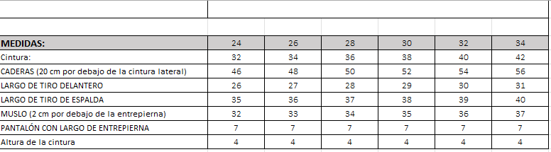 LAS MEDIDAS INDICADAS EN ESTA GUÍA SON APROXIMADAS Y PUEDEN VARIAR LIGERAMENTE DEBIDO A LA FABRICACIÓN, EL TIPO DE TELA Y EL LAVADO. LAS MISMAS CORRESPONDEN A LAS DIMENSIONES EN CENTÍMETROS TOMADAS DIRECTAMENTE SOBRE LA PRENDA (MEDIDAS PLANAS O CONTORNOS SEGÚN SE INDICA). RECOMENDAMOS TOMAR LAS MEDIDAS DE UNA PRENDA SIMILAR QUE TE QUEDE BIEN Y COMPARARLAS CON ESTA TABLA PARA ELEGIR EL TALLE MÁS ADECUADO.